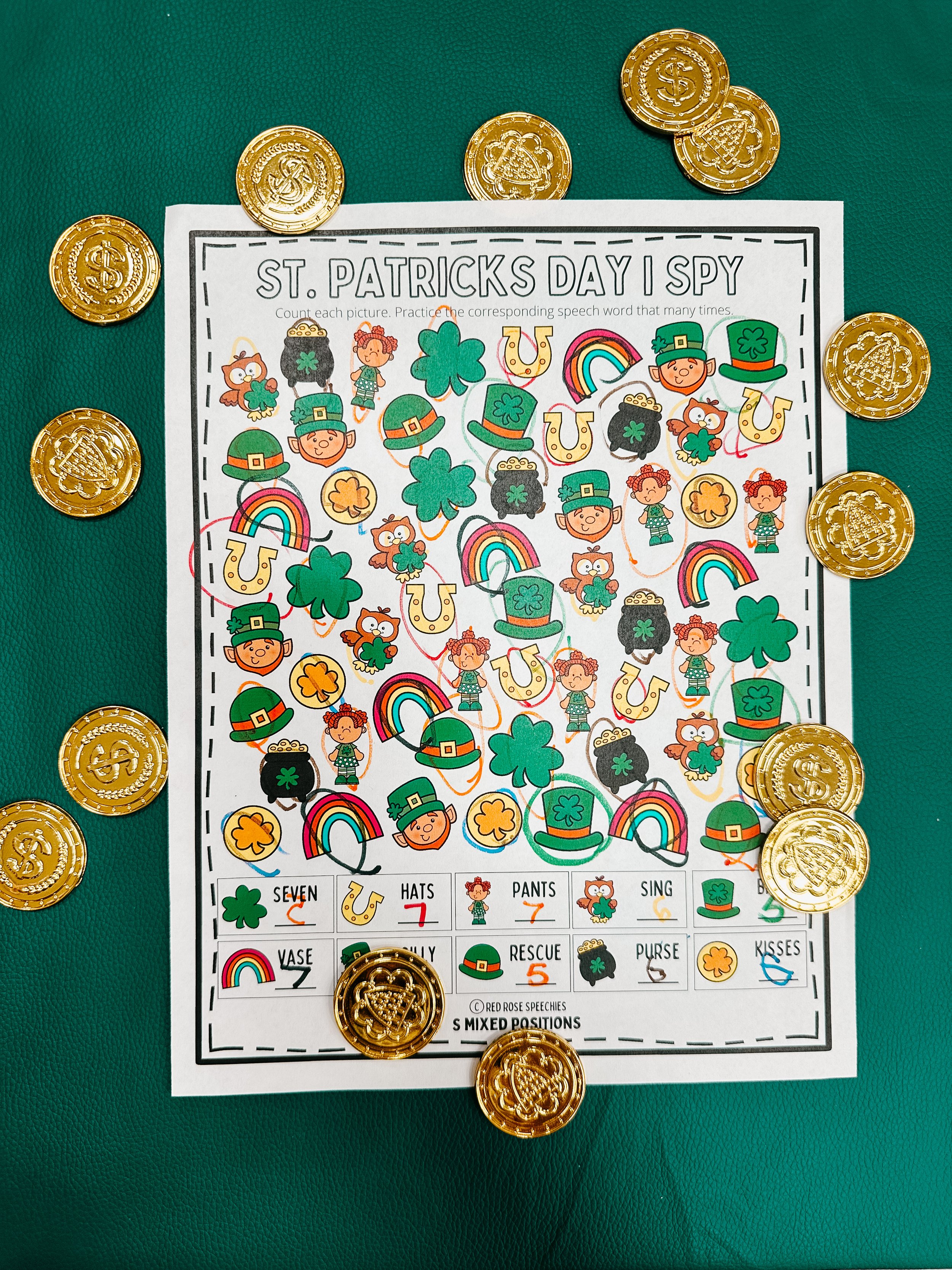 St. Patrick’s Day I Spy - A fun and engaging way to maximize articulation practice, instructing students to repeat target words up to ten times each time they spot the corresponding picture in the scene.